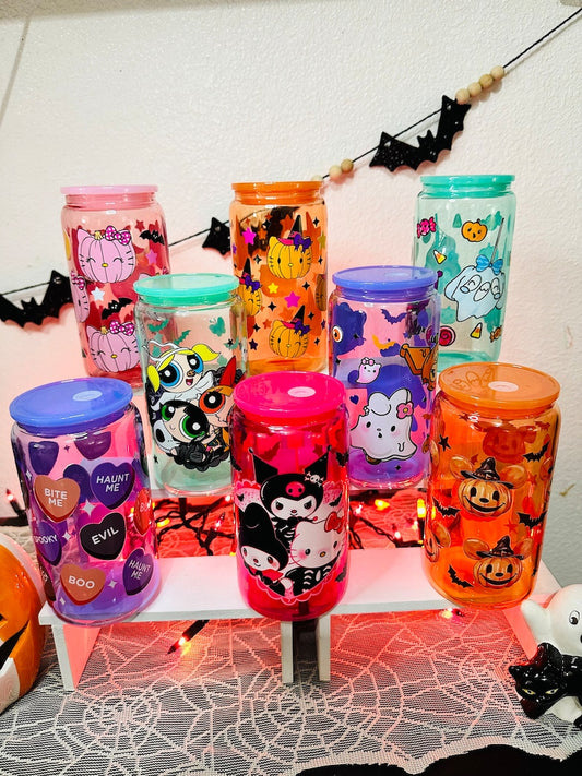 16oz Glass Cans with Color Lids Sublimation Blanks