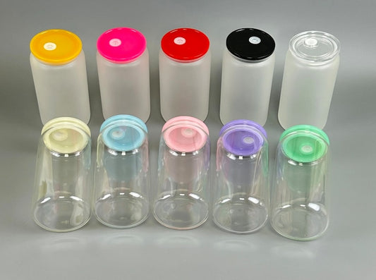 16oz Glass Cans with Color Lids Sublimation Blanks