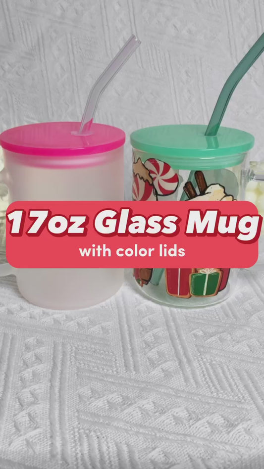 17oz Glass Mug with Color Lids Sublimation Blanks